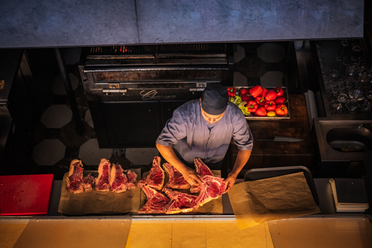 The experience begins before you even sit down. At the entrance, glass-fronted maturation fridges showcase hulking cuts of beef in various stages of dry-ageing. This is no mere storage solution – it is theatre.