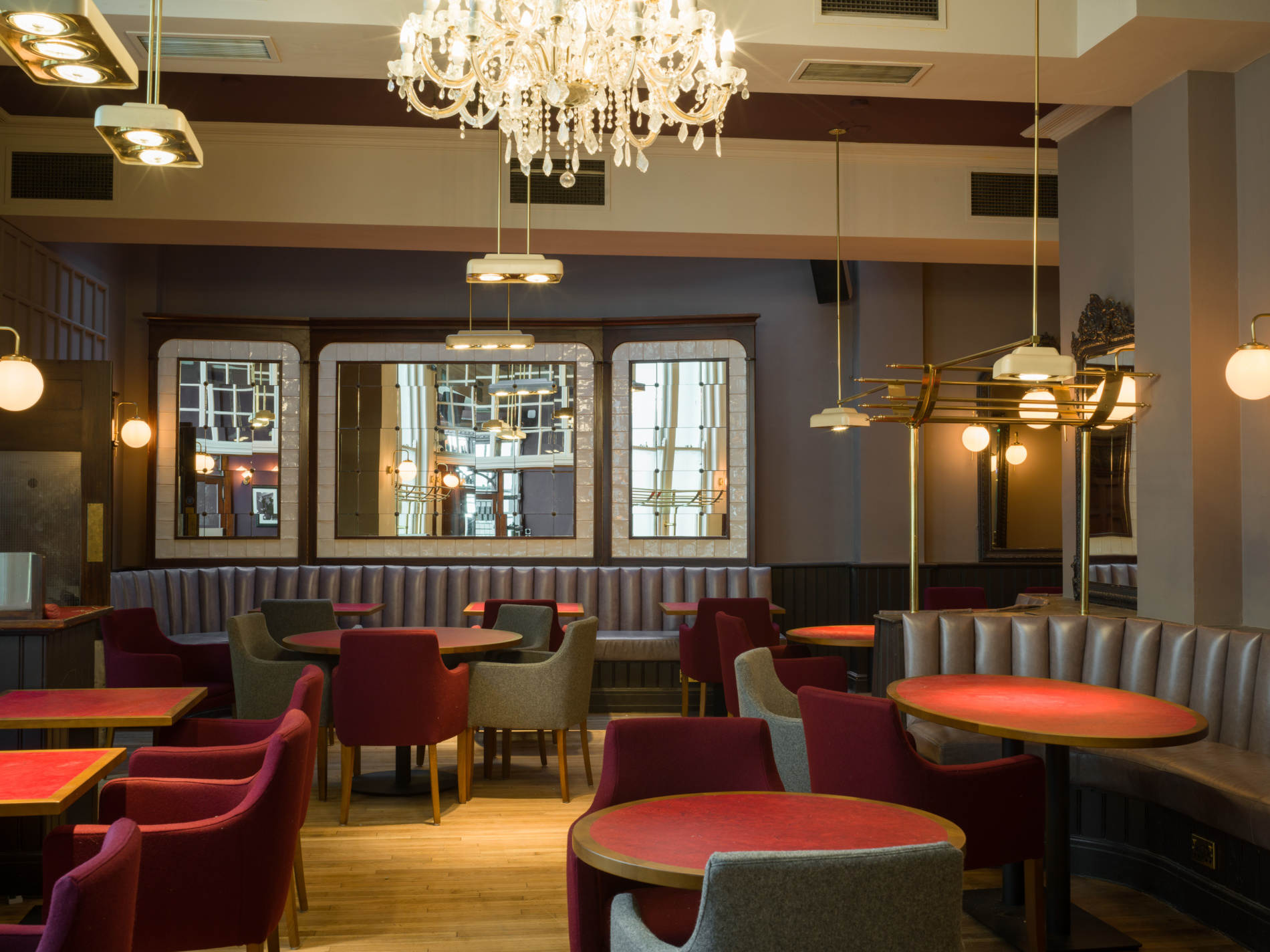 Features of the restored restaurant interior include rich impressive mahogany throughout, a mezzanine accessed by stairways with intricate wrought-iron railings, Versailles parquet flooring, and a copper-topped bar. There is seating for up to 120, spread out through the different sections. There are four private dining rooms, seating from five to 12. Our favourite seats 8 and is wonderful for business meetings, small celebrations or larger family dining.