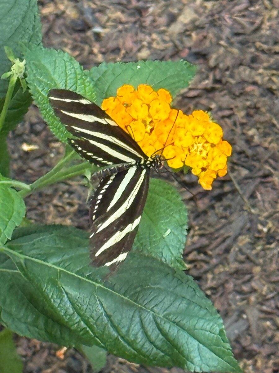 Easily recognisable by its long, narrow black wings streaked with yellow, the Zebra Longwing glides elegantly through the air. Known for its social nature, this butterfly often roosts in groups overnight. Its striking pattern and gentle flight make it a firm favourite for younger visitors captivated by its quiet charm.